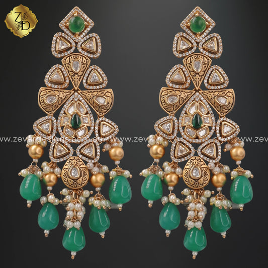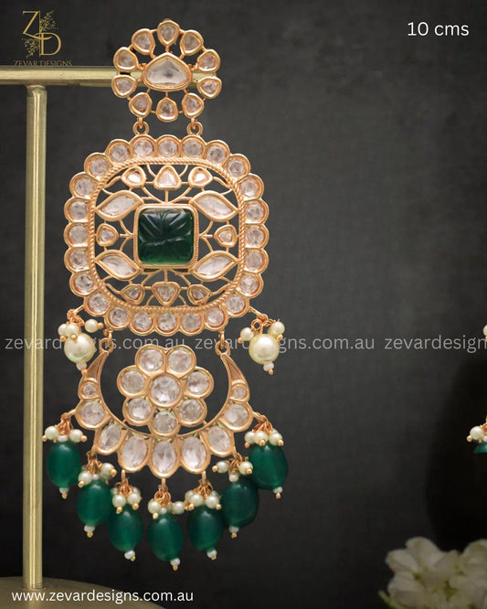 Kundan Polki Chandbali in Rose Gold and Emerald Green