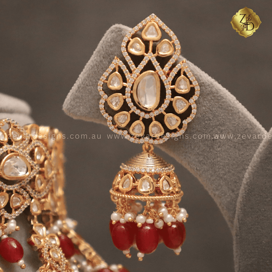 Polki & AD Necklace set with Emerald green drops - Mehndi Finish