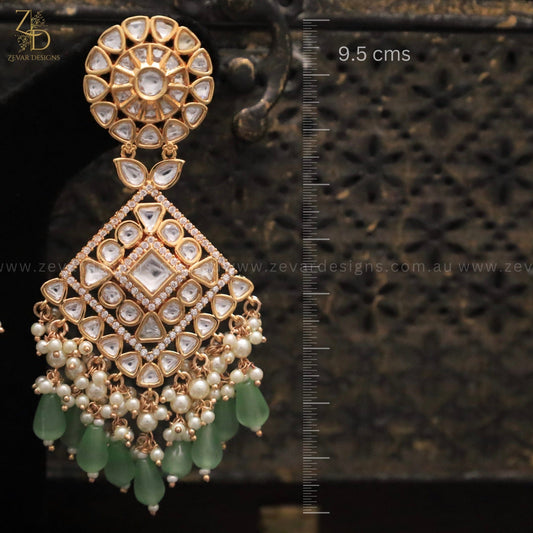 Rama Green Long Dangle AD Earrings - Dual Finish