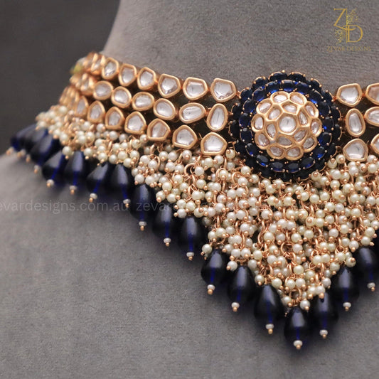 TYAANI inspired Polki Choker Set -Sapphire Blue