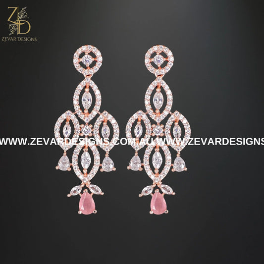 AD/Zircon Mangalsutra and Earrings Set - Rose Gold