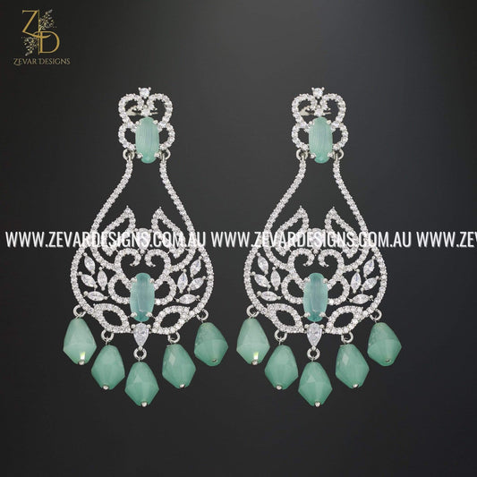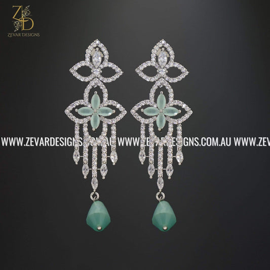 AD/Zircon Earrings - White Rhodium and Ocean Blue