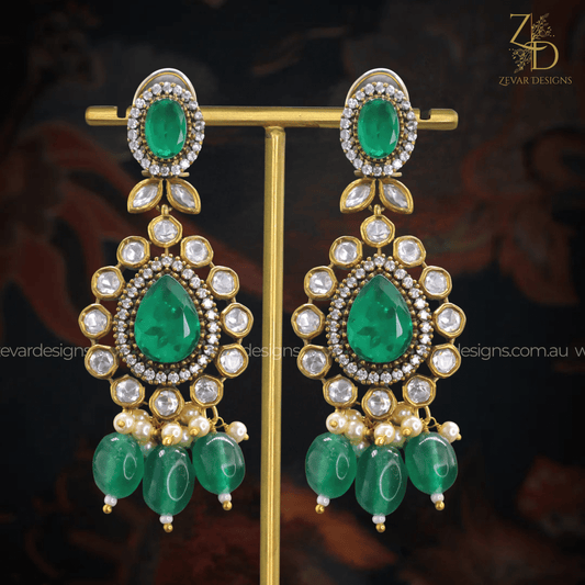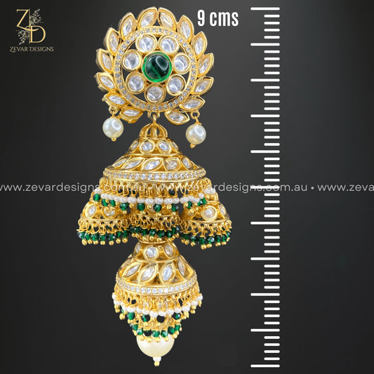 Designer Kundan Jhumki - Green