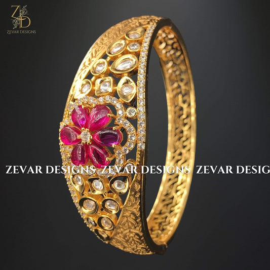 Kundan and AD Dual Finish Long Set - Lemon Yellow