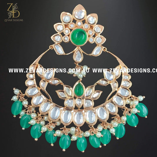 Kundan Polki Chandbali in Rose Gold and Emerald Green