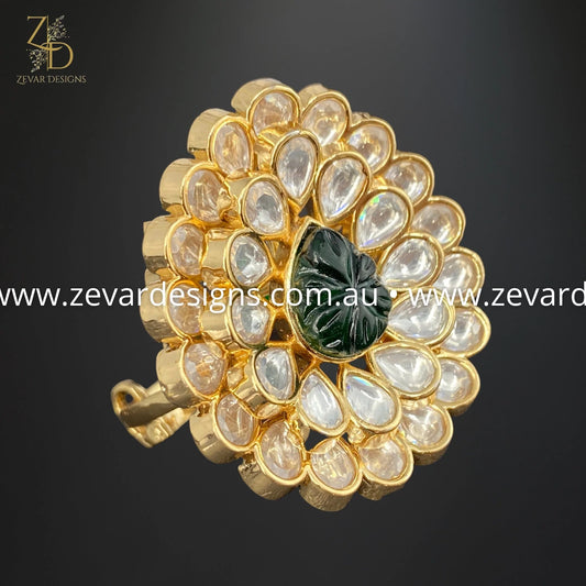 Designer Kundan Polki Ring - Green