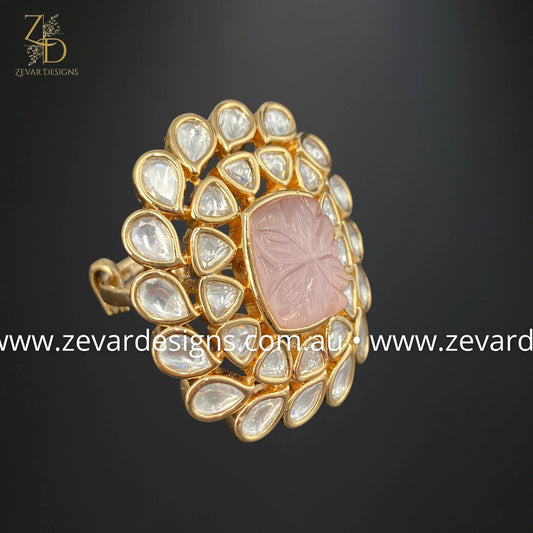Kundan Ring with Carved Stone - Pink