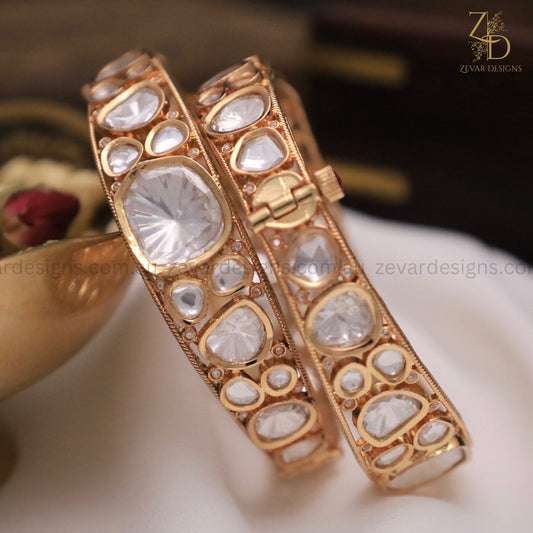 Kundan Uncut Polki AD Bangles - Rose Gold