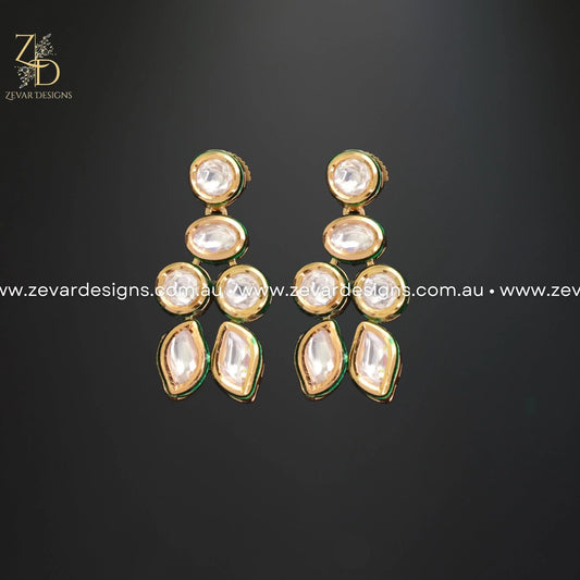 18K Gold Plated Kundan Polki Beaded Necklace Set with Pearls & Emerald green drops