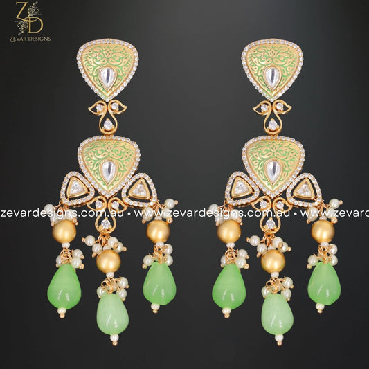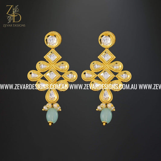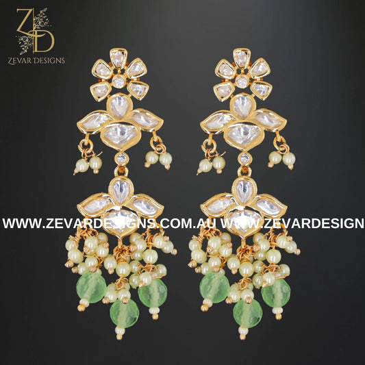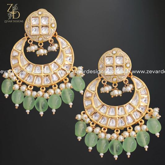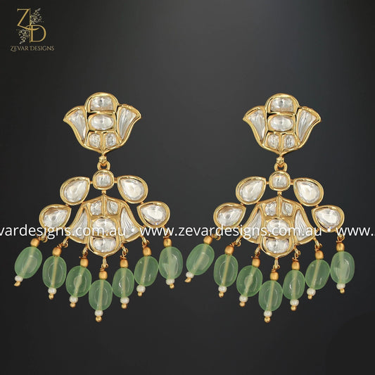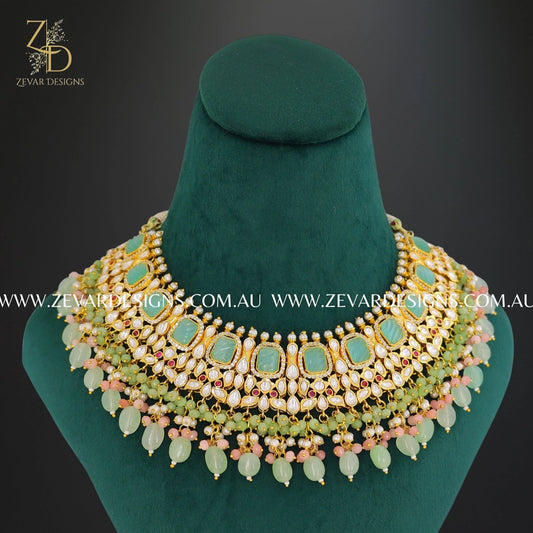 18K Gold Plated Kundan Polki Beaded Necklace Set with Pearls & Mint green drops