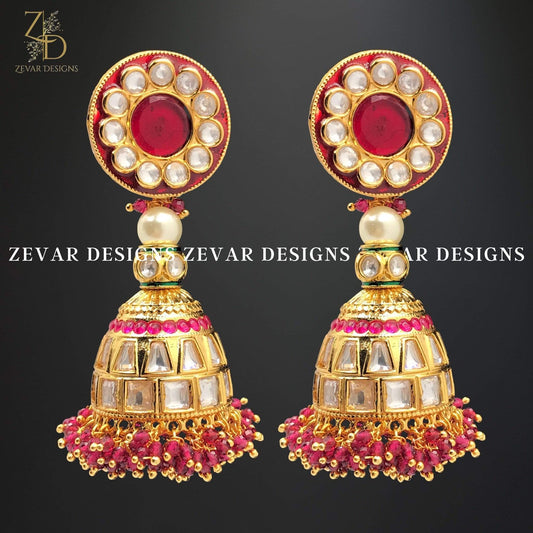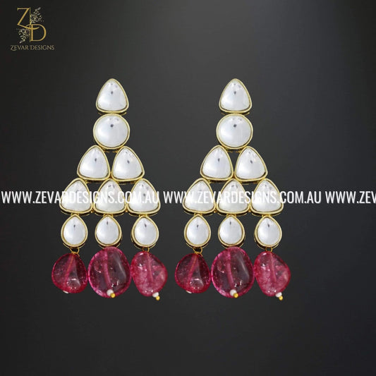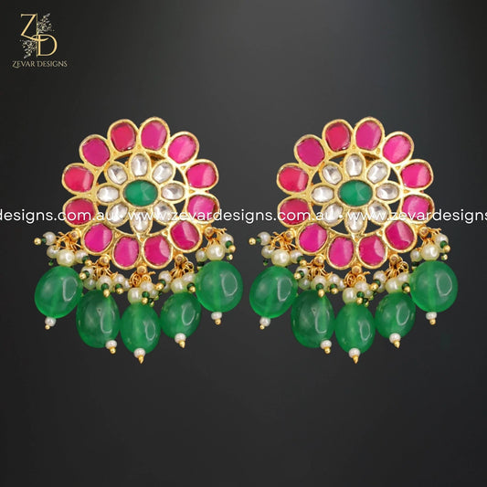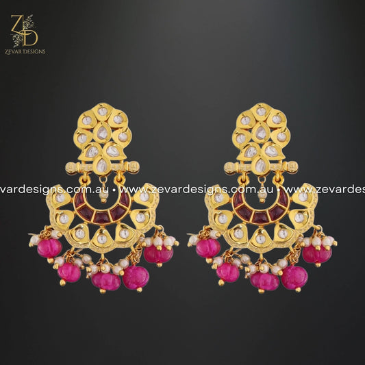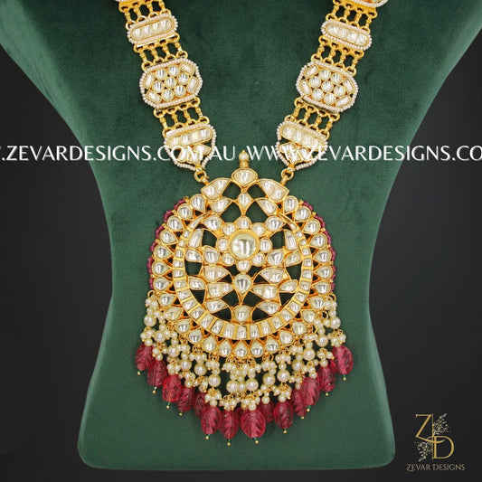 Kundan Pendant Set - Ruby Red and Pearl Drops