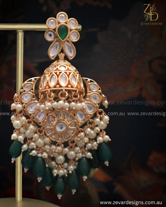 Heritage Inspired Chandbali Earrings - Emerald green