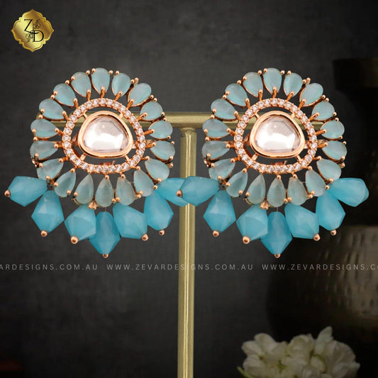Designer Crystal AD Earrings - Ink Blue