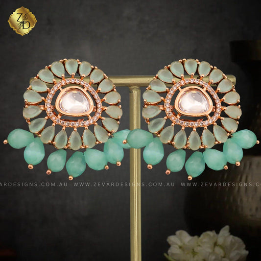 Mint AD/ZIRCONIA STUDDED DROP EARRINGS