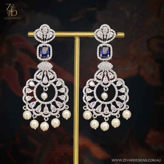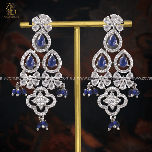 AD Necklace Set with Sapphire Blue Stones