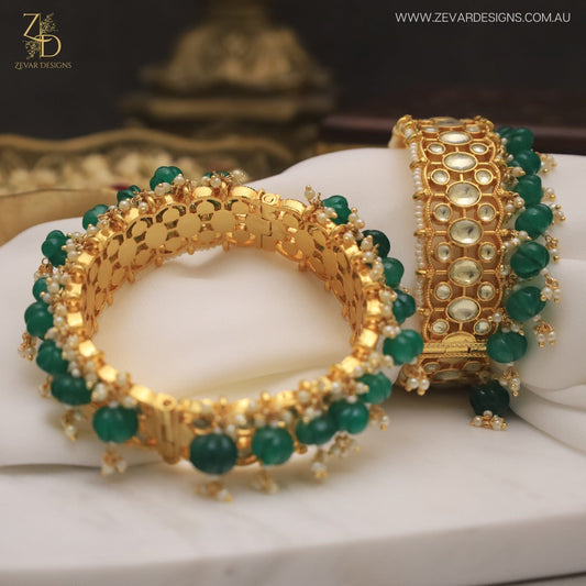 Pachi Kundan Bangles - Emerald Green