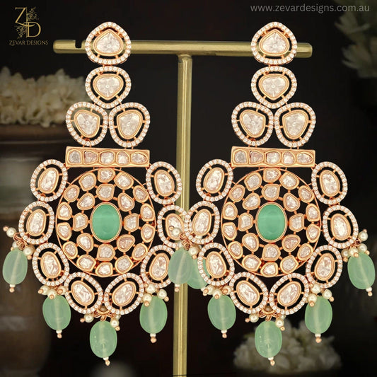 Uncut Polki Earrings - Green