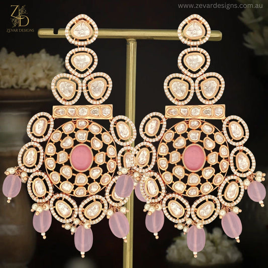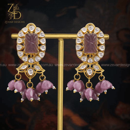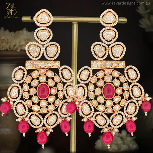 Uncut Polki Earrings - Red