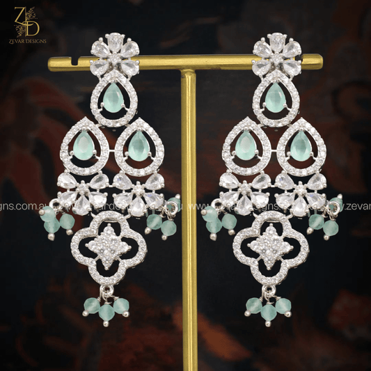 Oversize Designer Dangler Jhumki Earrings- Green