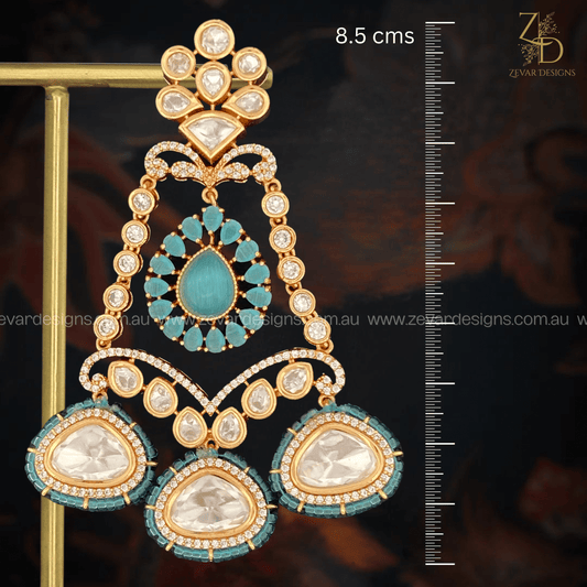 Uncut Polki & AD Maang Tikka Set - Mint