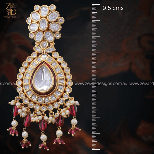 Uncut Polki & AD Maang Tikka Set - Ruby Red