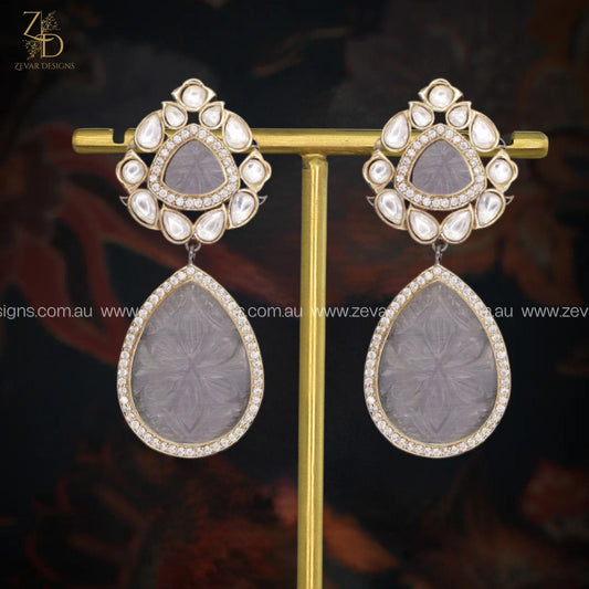 Victorian Kundan Polki & AD Set - Grey