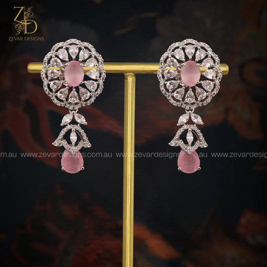 AD/Zircon Necklace Set - Rose Gold and Pink