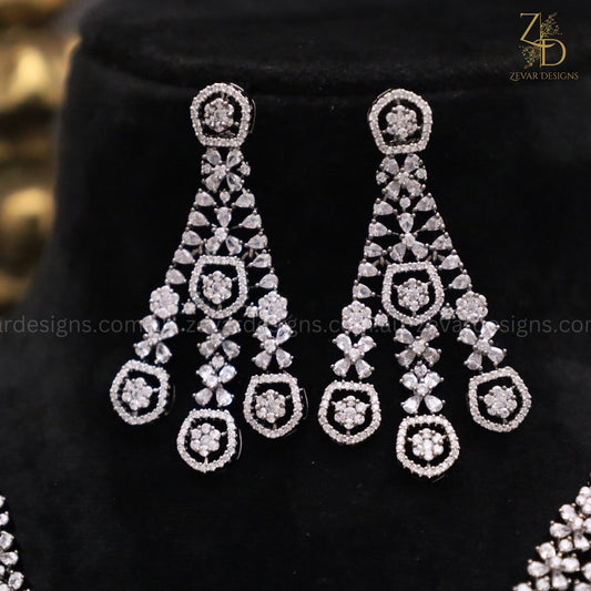 Layered AD/Zircon Necklace Set - Black/Silver Finish