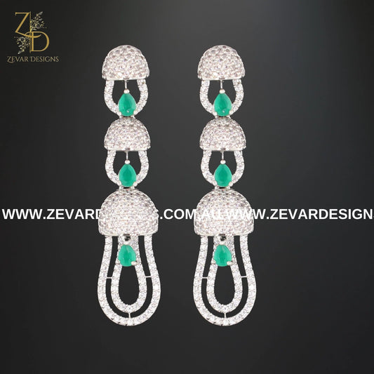 AD/Zircon Necklace Set - White Rhodium and Emerald
