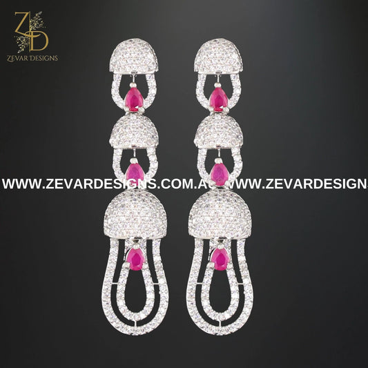 AD/Zircon Necklace Set - White Rhodium and Ruby