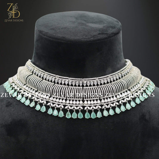 Radiate elegance with our exquisite AD Zircon Necklace Sets collection. Adorned with sparkling Zircon stones, these necklace sets add a touch of glamour to any occasion. Perfect for weddings and special events, our collection offers stunning designs and impeccable craftsmanship. Shop now and embrace the enchanting beauty of AD Zircon Necklace Sets.